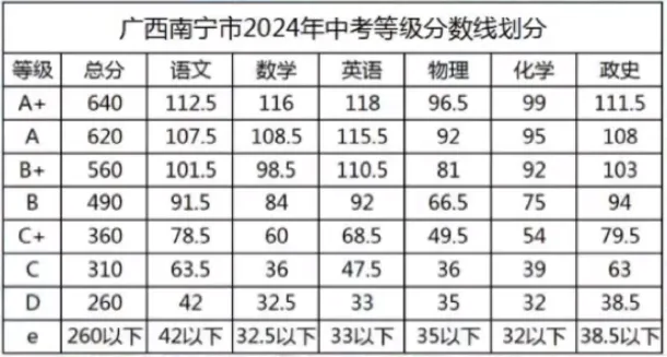 (2024年南寧中考各科分數(shù)線,2025年可參考)